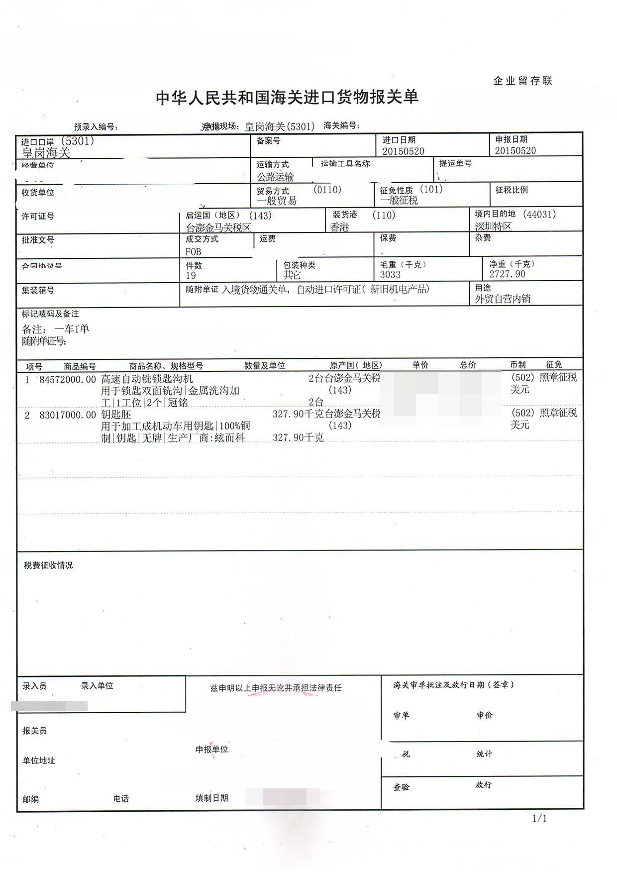 - 高速自動銑鎖匙溝機進口報關手續及案例【進口知識】