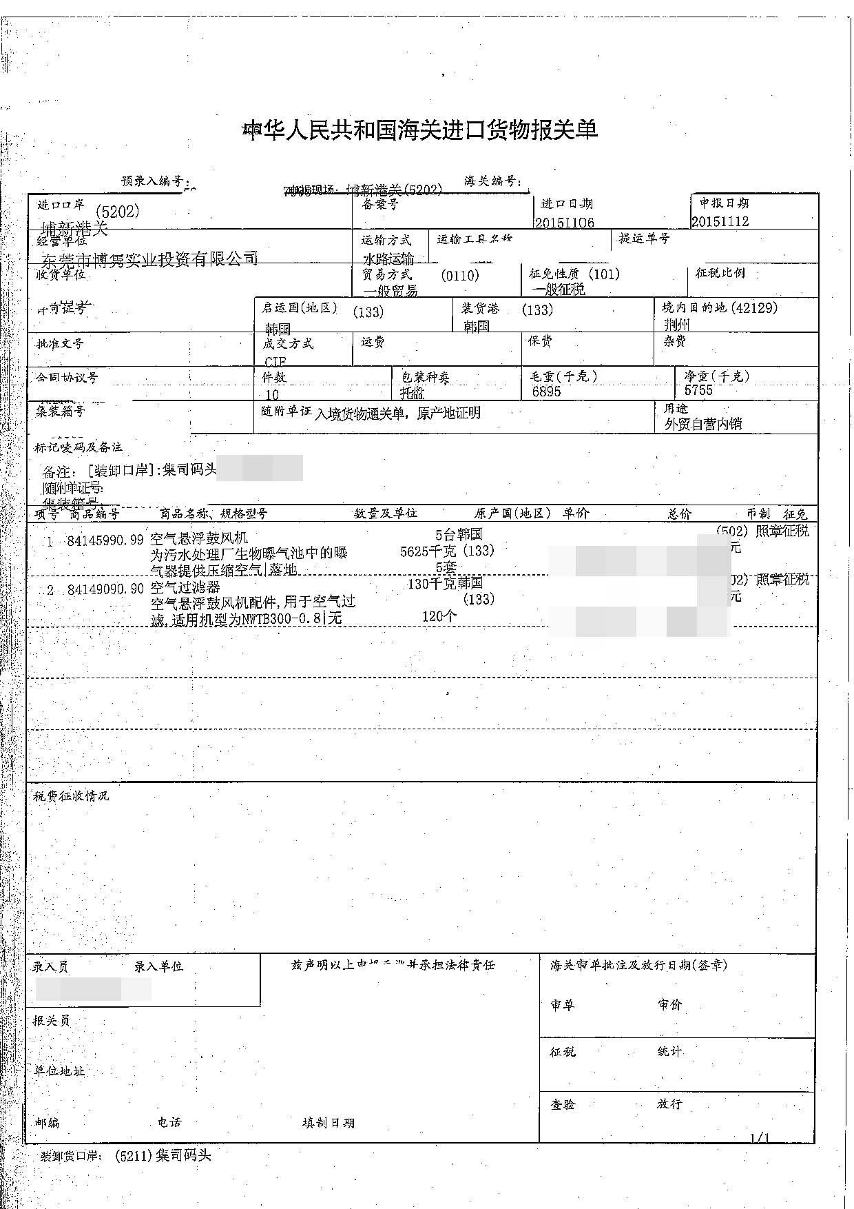 三、空氣懸浮鼓風(fēng)機(jī)進(jìn)口報(bào)關(guān)案例展示