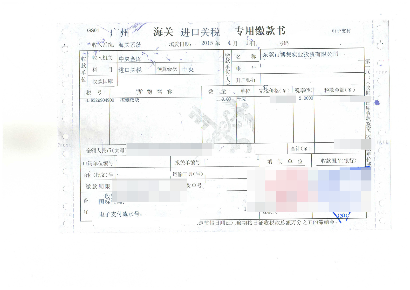 三、控制模塊進口報關案例展示