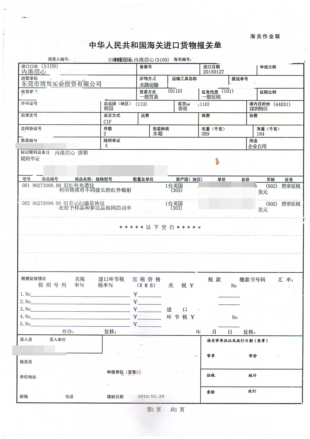二手舊紅外光譜儀進口報關案例【建議收藏】