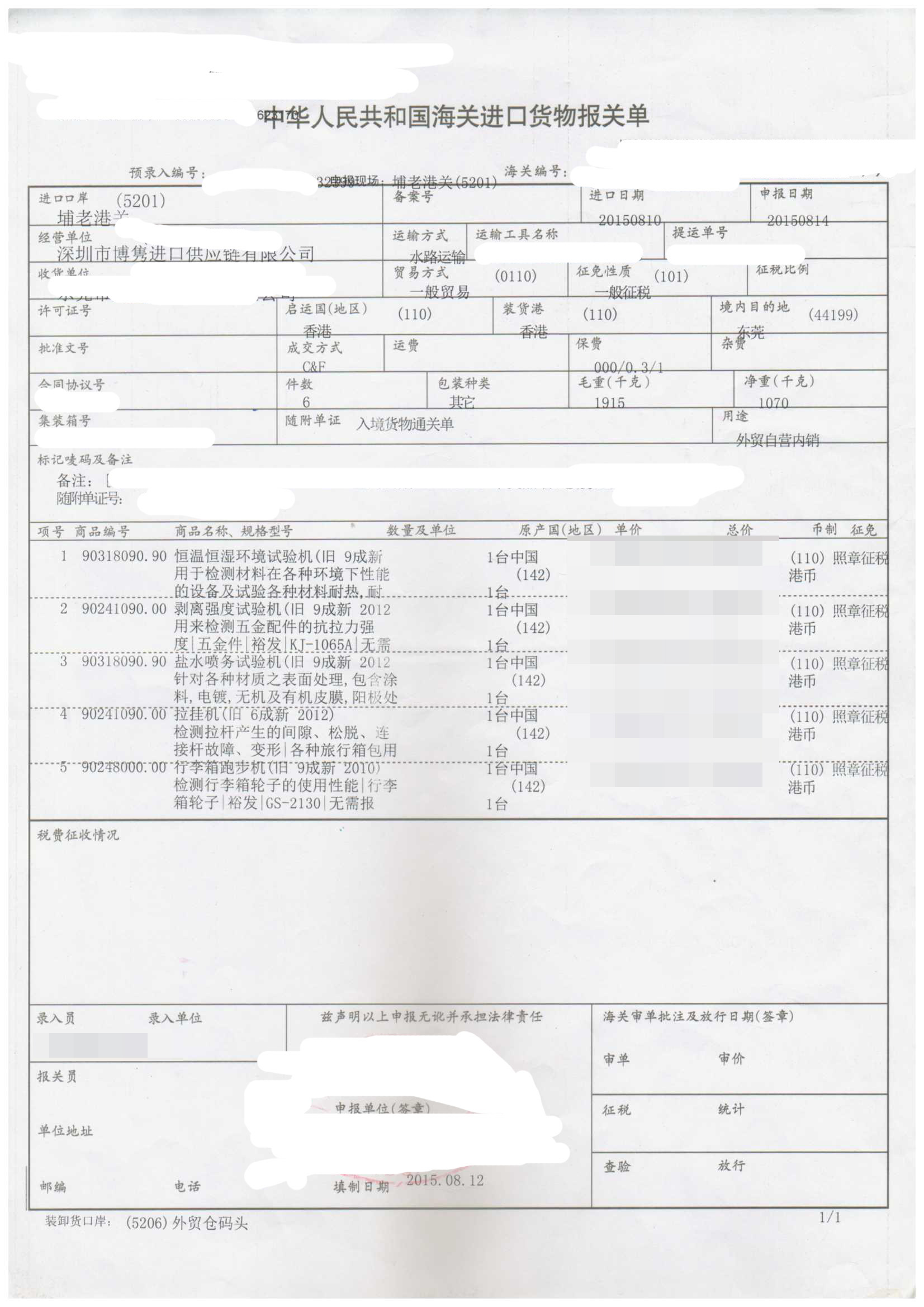 試驗機(舊 9成新)進口報關手續及案例【建議收藏】