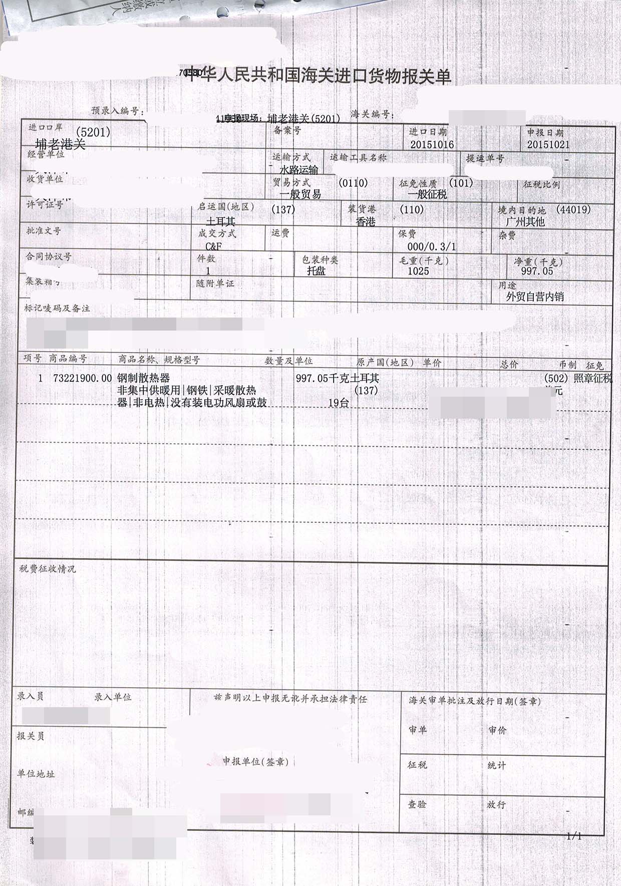 三、鋼制散熱器進口報關案例展示
