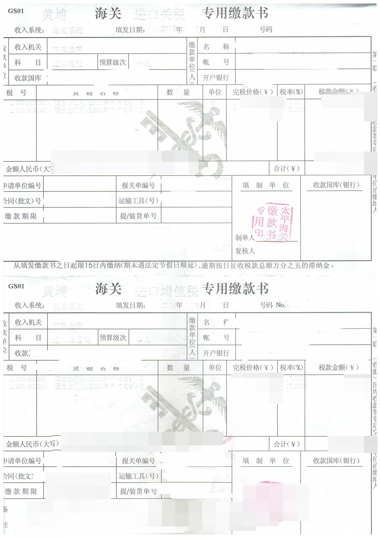 進口口岸:虎門(太平海關)
