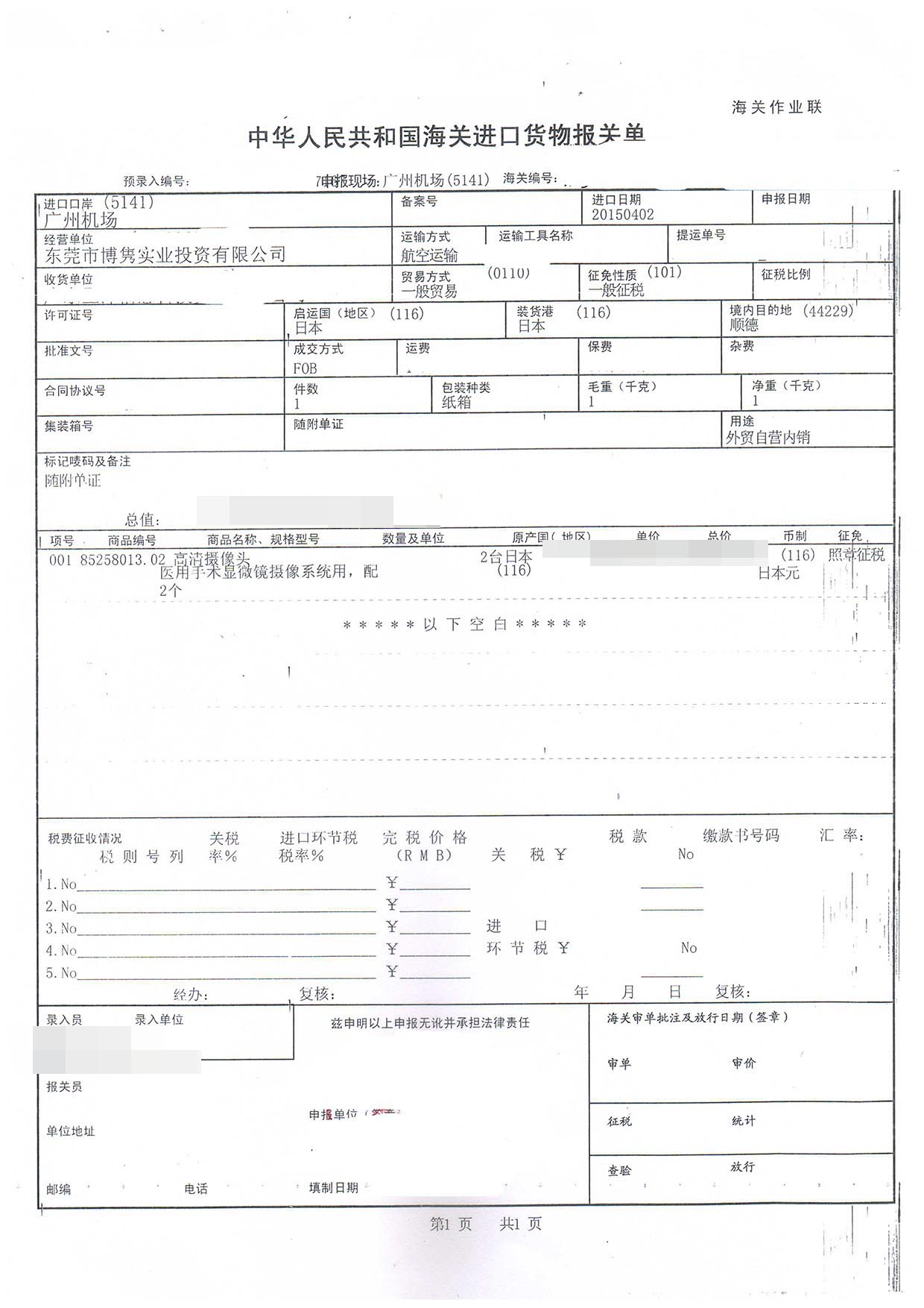 三、高清攝像頭進口報關案例展示